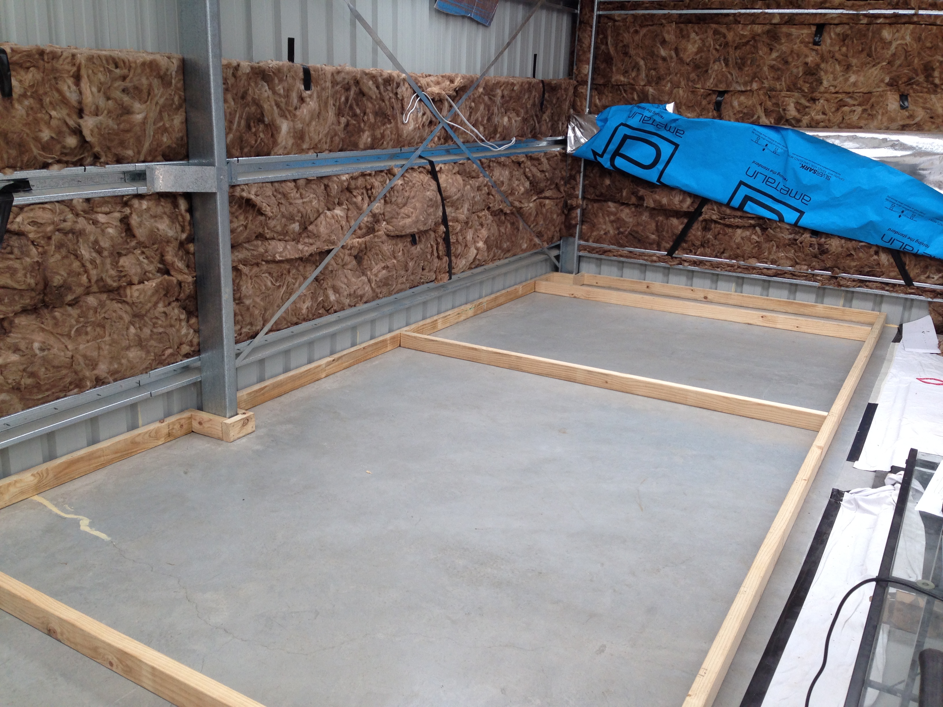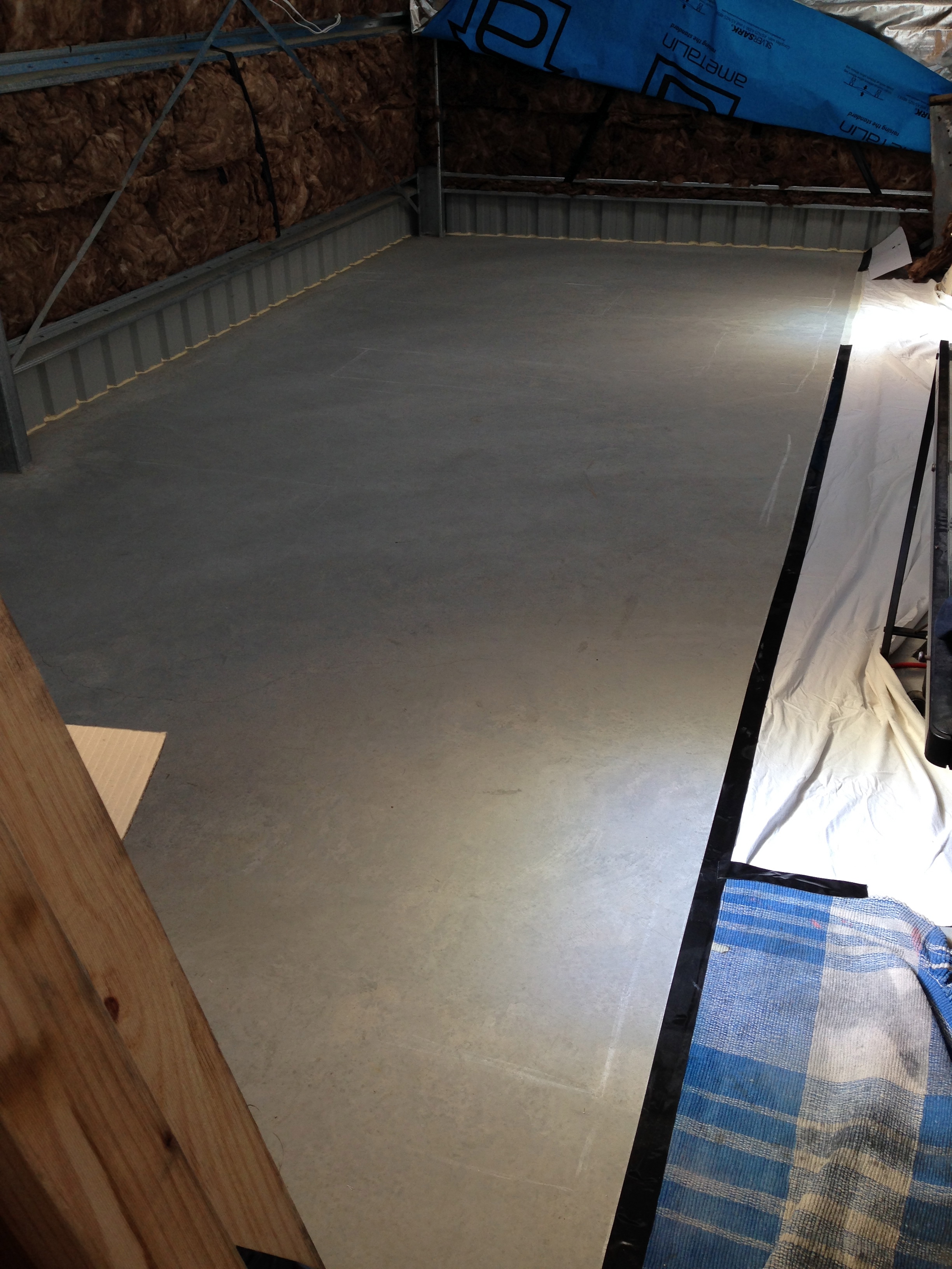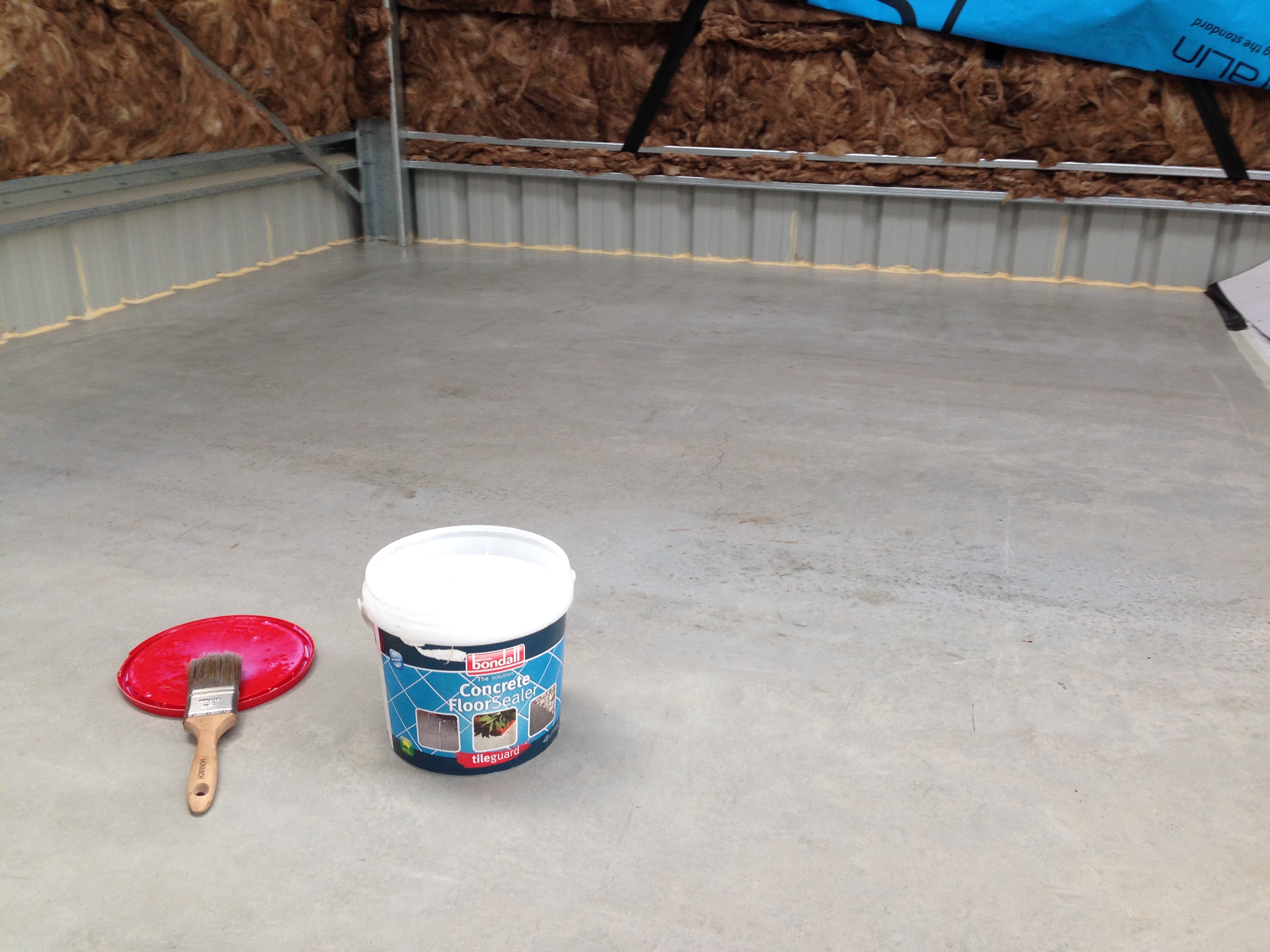 Next job was sealing the concrete, as well as running a bead of silicone around the join of the slab and the garage walls. We had some heavy rains a week prior to the build commencing, and I noted water seeping in through the join, which would potentially destroy the wood in the floor if left unsealed.